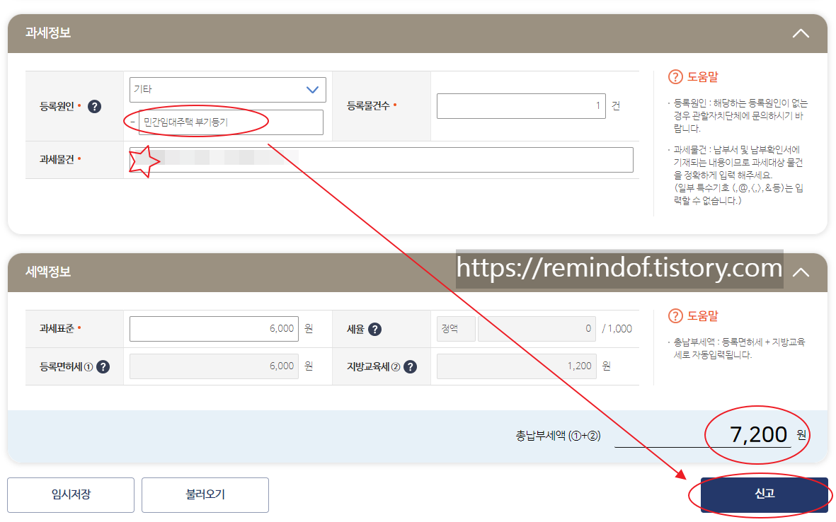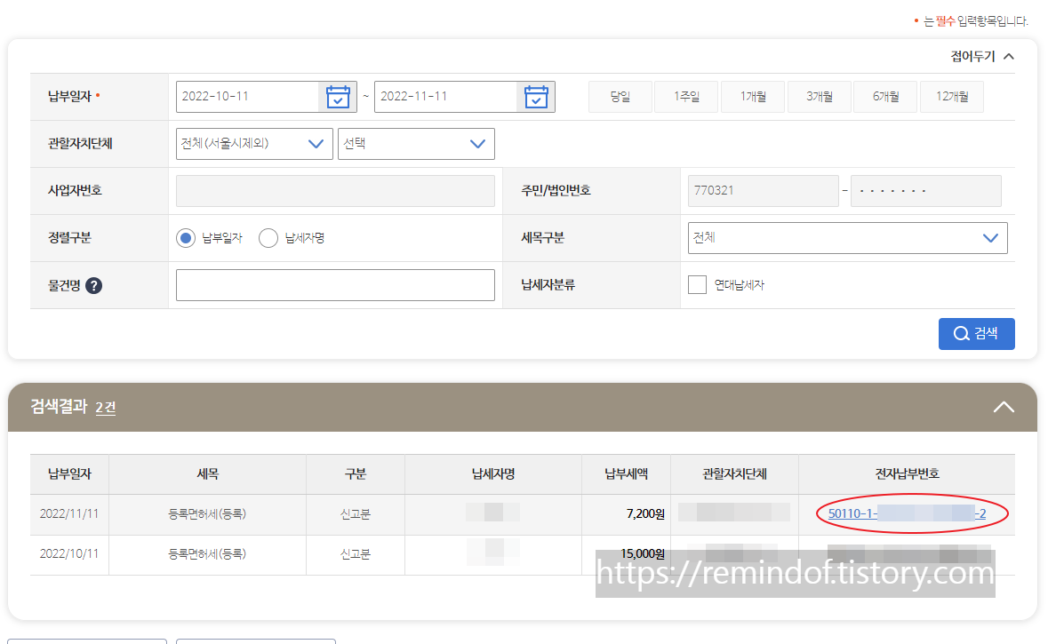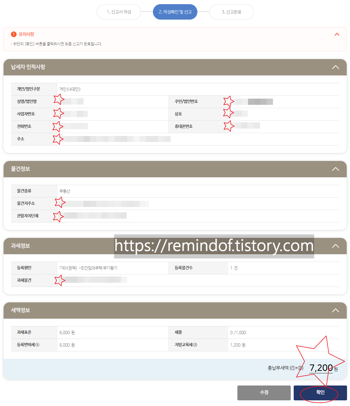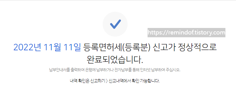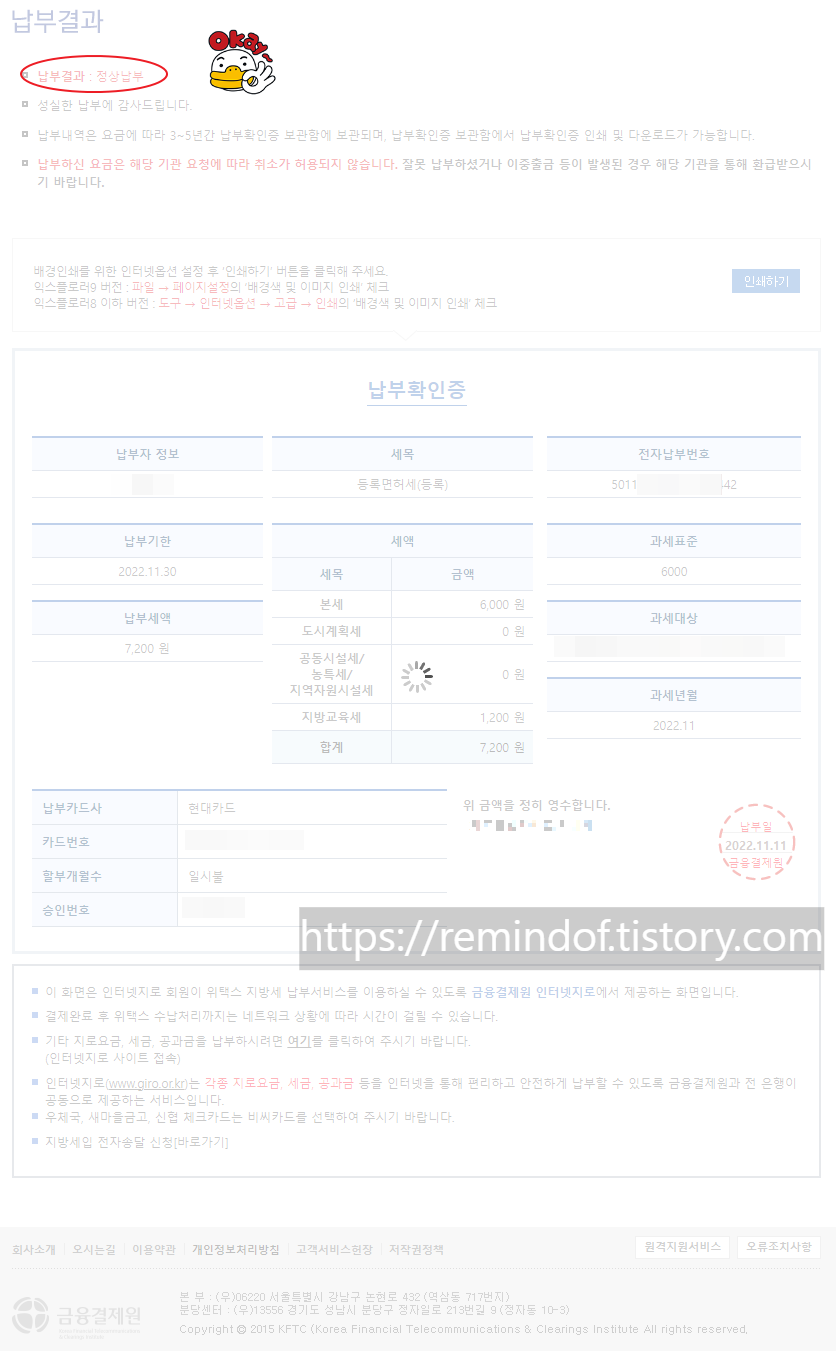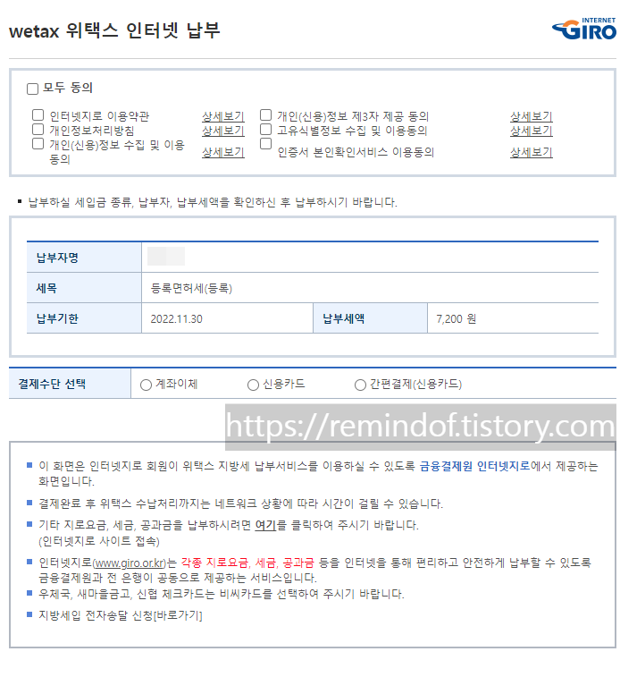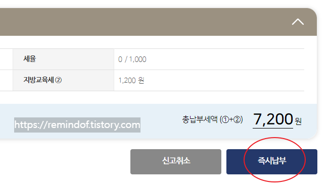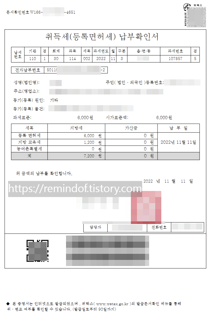 이제 등록면허세(등록분) 7,200원을 납부해야 합니다.
