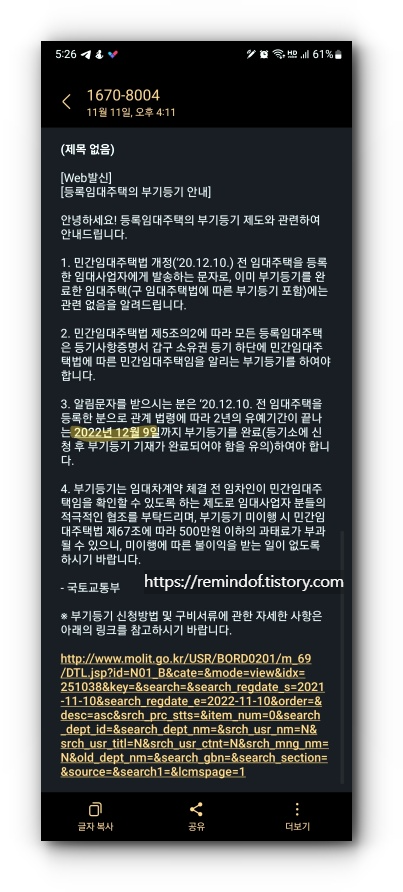 등록임대주택의 부기등기를 해야 한다고 방금 문자를 받았습니다.