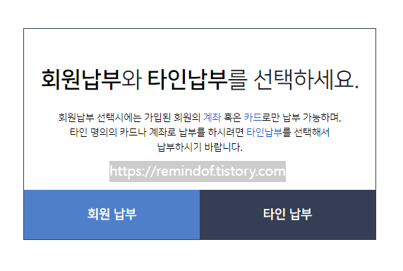 납부는 [회원납부], [타인납부]가 가능합니다.