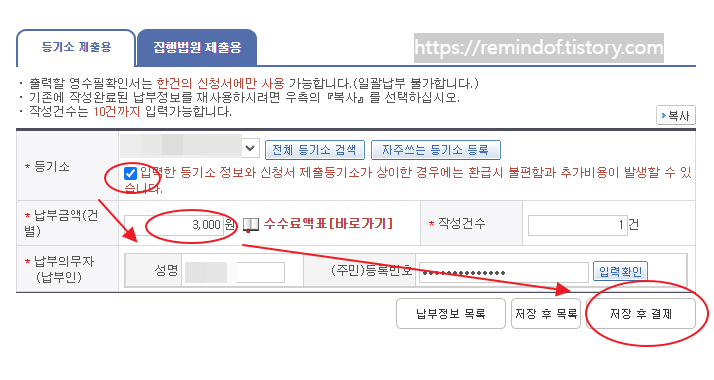 사용 기한이 있기 때문에 등기소 갈 날짜 확인하시고 결제를 하시기 바랍니다.