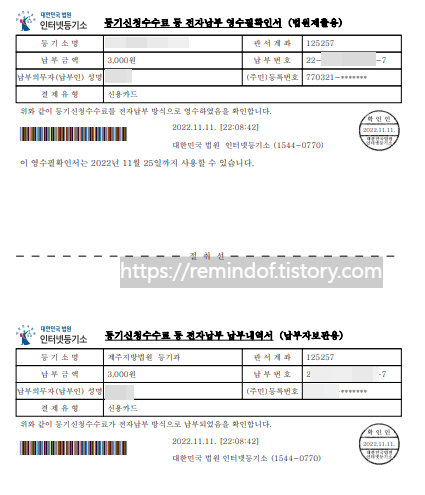 2022.11.11 - [분류 전체보기] - 등록임대주택의 부기등기 서류, 등록면허세 영수필 확인서 받기
