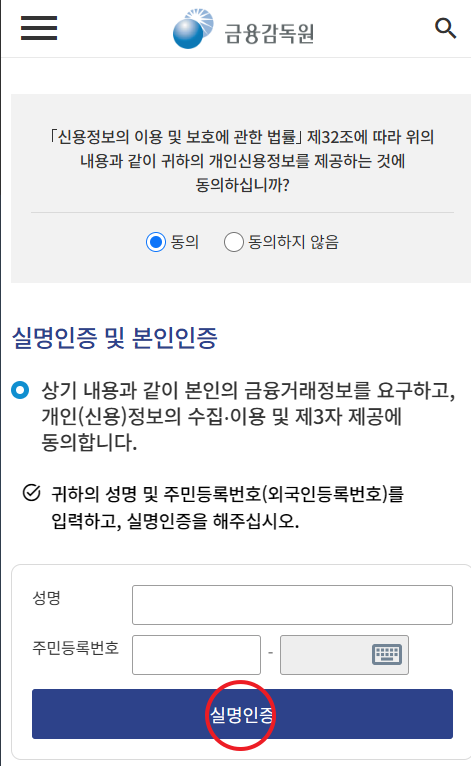 시간이 지나 금융감독원 홈페이지에 접속하여