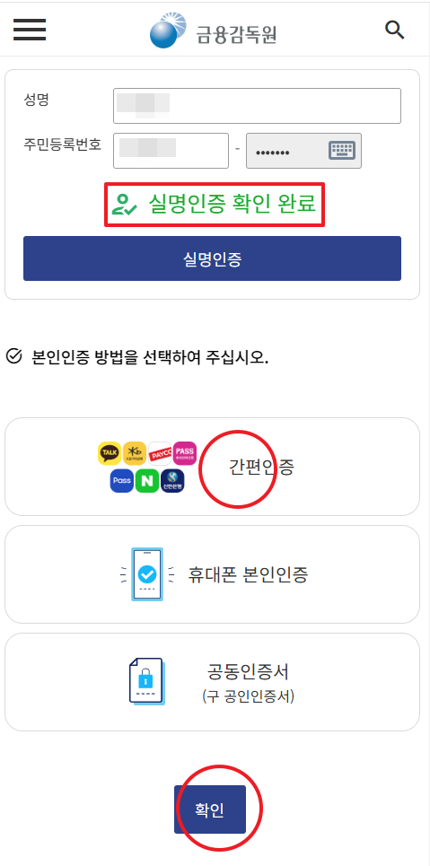 실명인증은 공동인증서뿐 아니라 간편인증과 휴대폰 본인인증으로도 가능합니다.